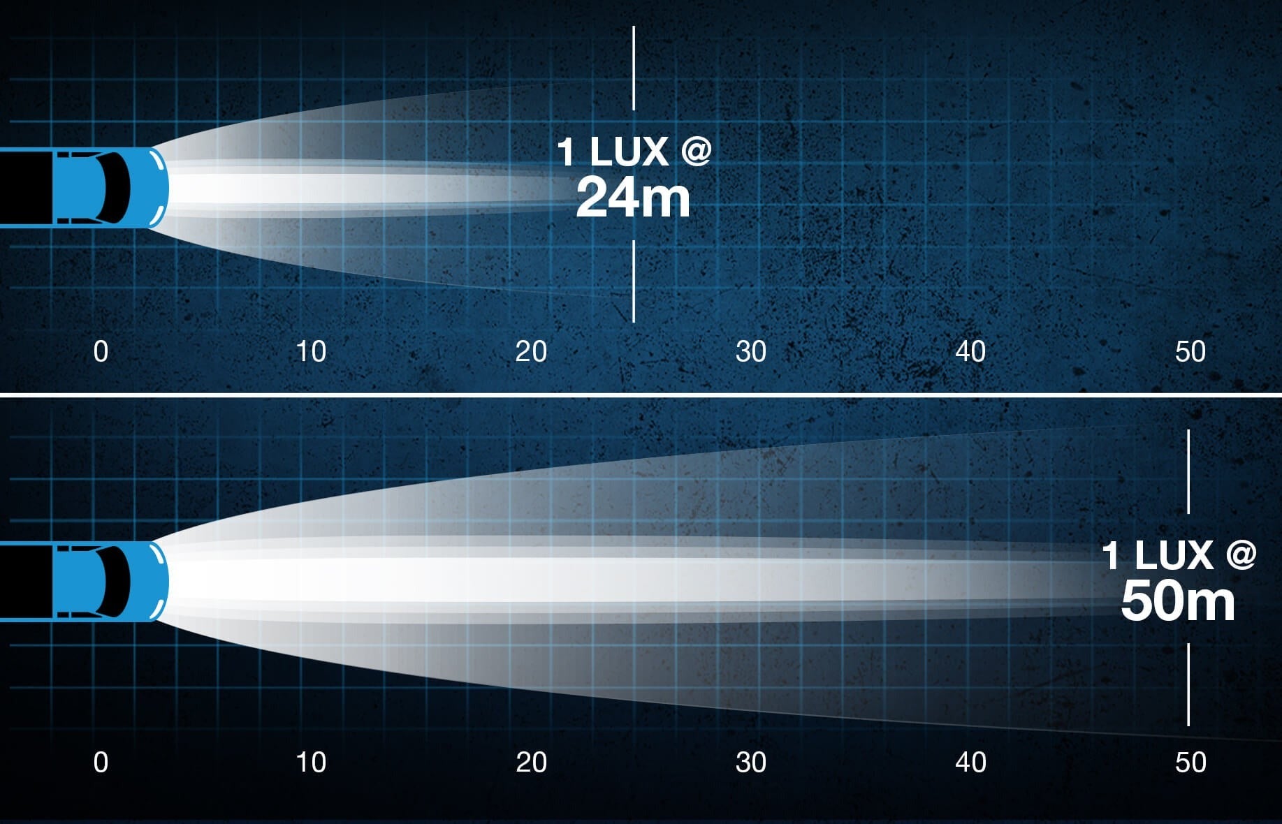 Choose between spot or flood beam patterns with the included interchangeable lens.