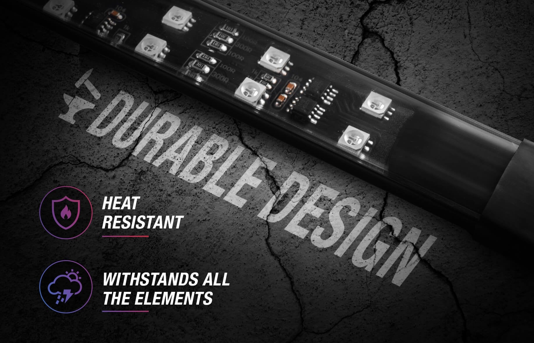 Thoroughly tested to withstand all the elements, the Formula DRIFT Pro Series Smart LED Exterior Lighting Kit is made of heavy-duty and heat resistant LED strips so you never have to worry about the lights falling off or deteriorating over time.