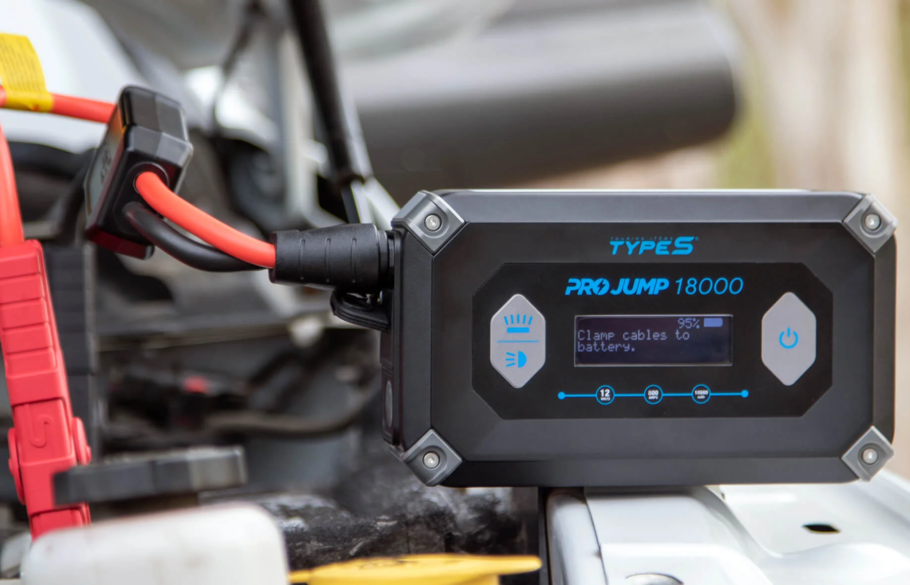 TYPE S 12V 9.0L ProJump™ Battery Jump Starter is the ultimate battery jump starter for any vehicle. Its ultrapowerful design with 18,000 mAh power bank is capable of jump starting gas engines up to 9.0L and diesel engines up to 6.0L, providing coverage for all common vehicles on the road.