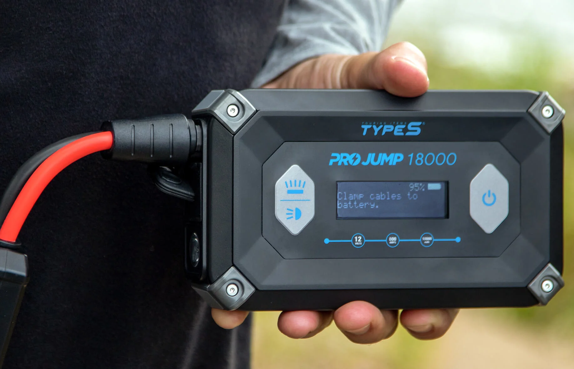 TYPE S 12V 9.0L ProJump™ Battery Jump Starter is the ultimate battery jump starter for any vehicle. Its ultrapowerful design with 18,000 mAh power bank is capable of jump starting gas engines up to 9.0L and diesel engines up to 6.0L, providing coverage for all common vehicles on the road.