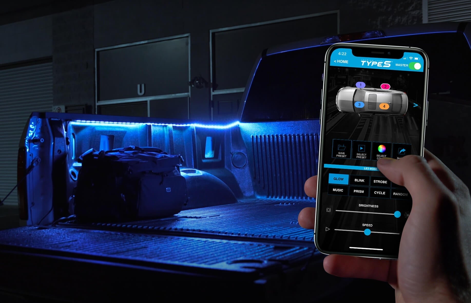 Design your own custom lighting zones around your truck bed to create the perfect blend of colors and brightness.