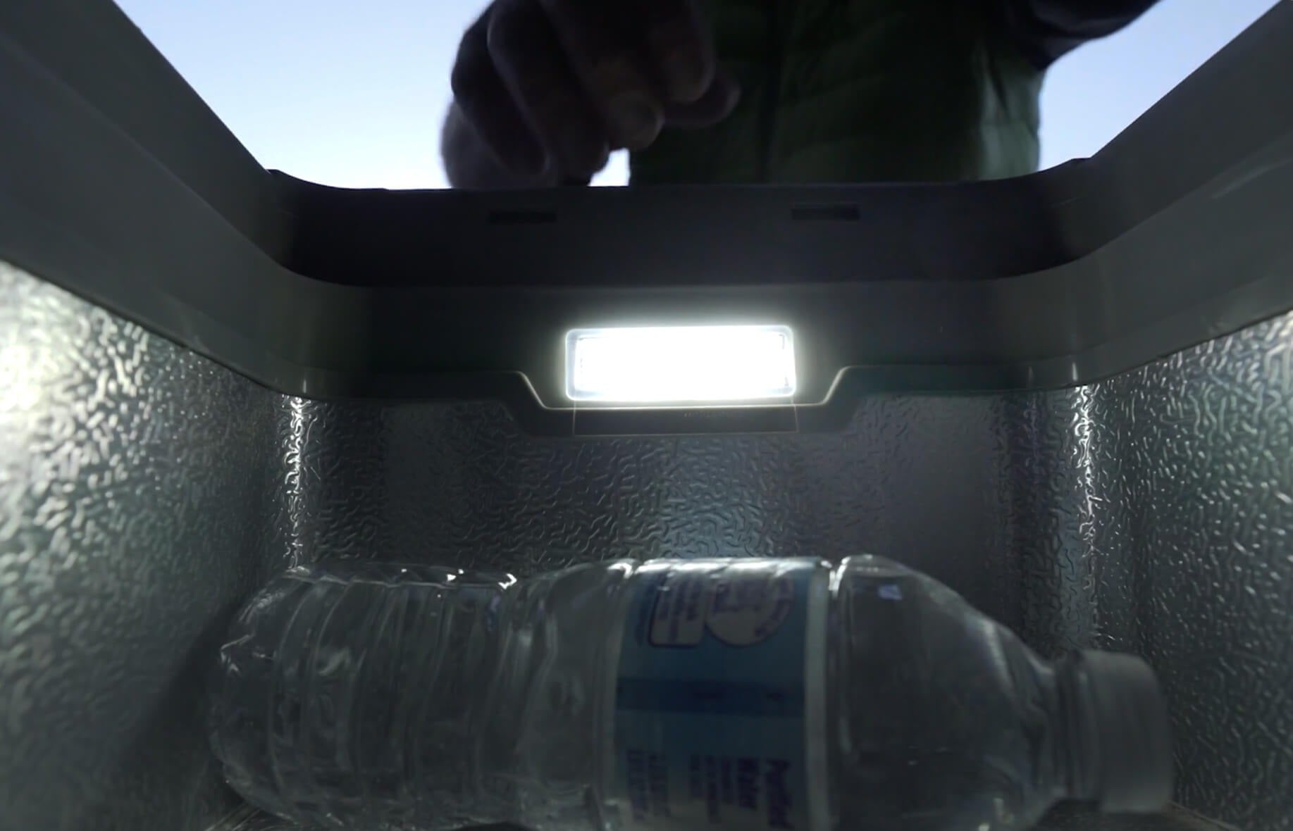 The cooler needs to be plugged into the car power socket, but no need to worry about losing access to the charging ports. The Blizzard Box 22QT/21L comes with a built-in charger port that supports up to 1.5A output to devices. Too many plug-in coolers drain the car battery when the engine's not running, but not this one. The power attachment has intelligent sensor technology that lets the cooler know when your car battery's voltage is low, and it shuts itself off to save your power supply. If you've ever had to rummage about a cooler at night to get a beer, you know how awkward it is to hold a flashlight with one hand and reach into the cooler with the other. The built-in internal lights make this cooler a breeze to use, even after sundown.