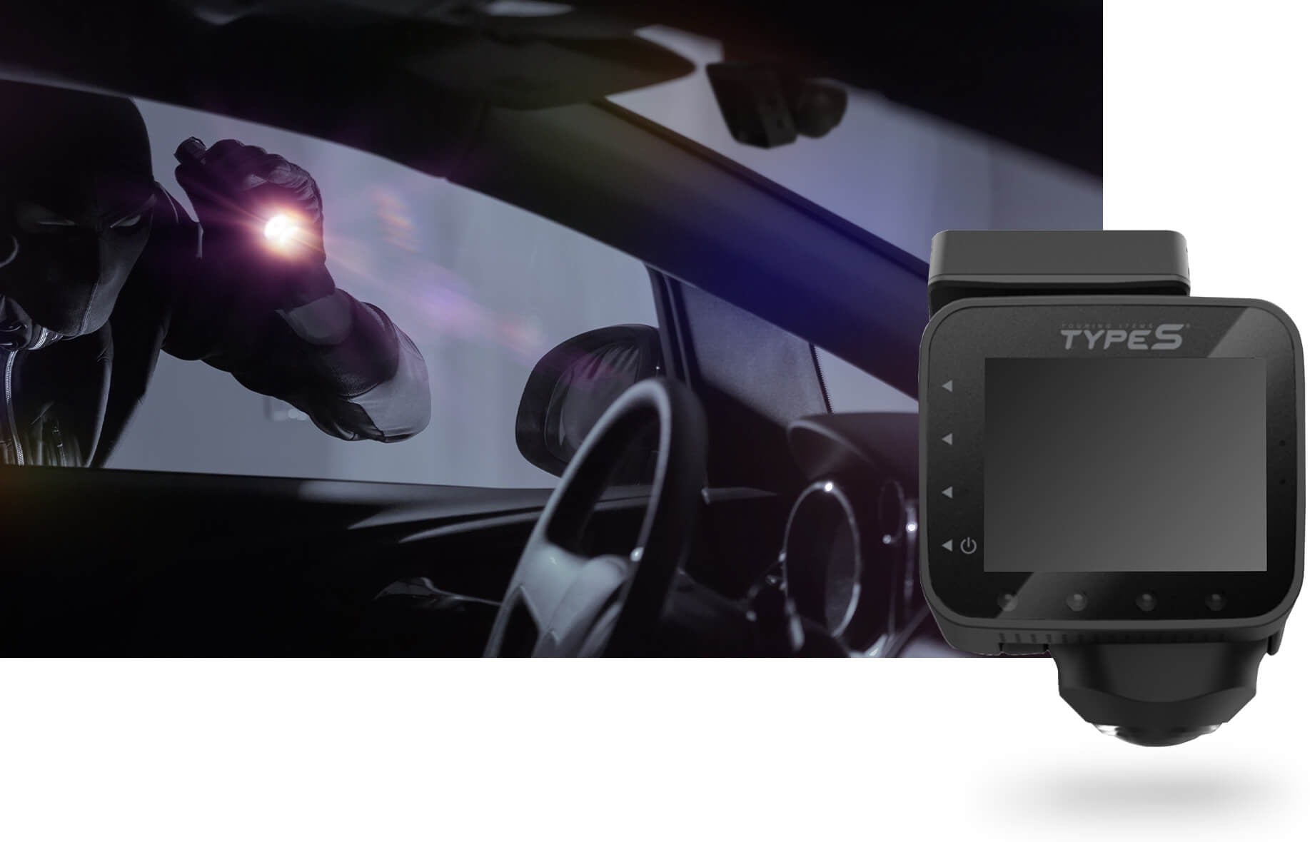 Get 24-hour surveillance for your vehicle with Park & Record mode. When hardwired, the TYPE S 360-degree car cam’s built-in G-sensor automatically captures and saves video 10 seconds before and 10 seconds when an impact or collision is detected, making sure the evidence footage is secure even when your car is parked and turned off.