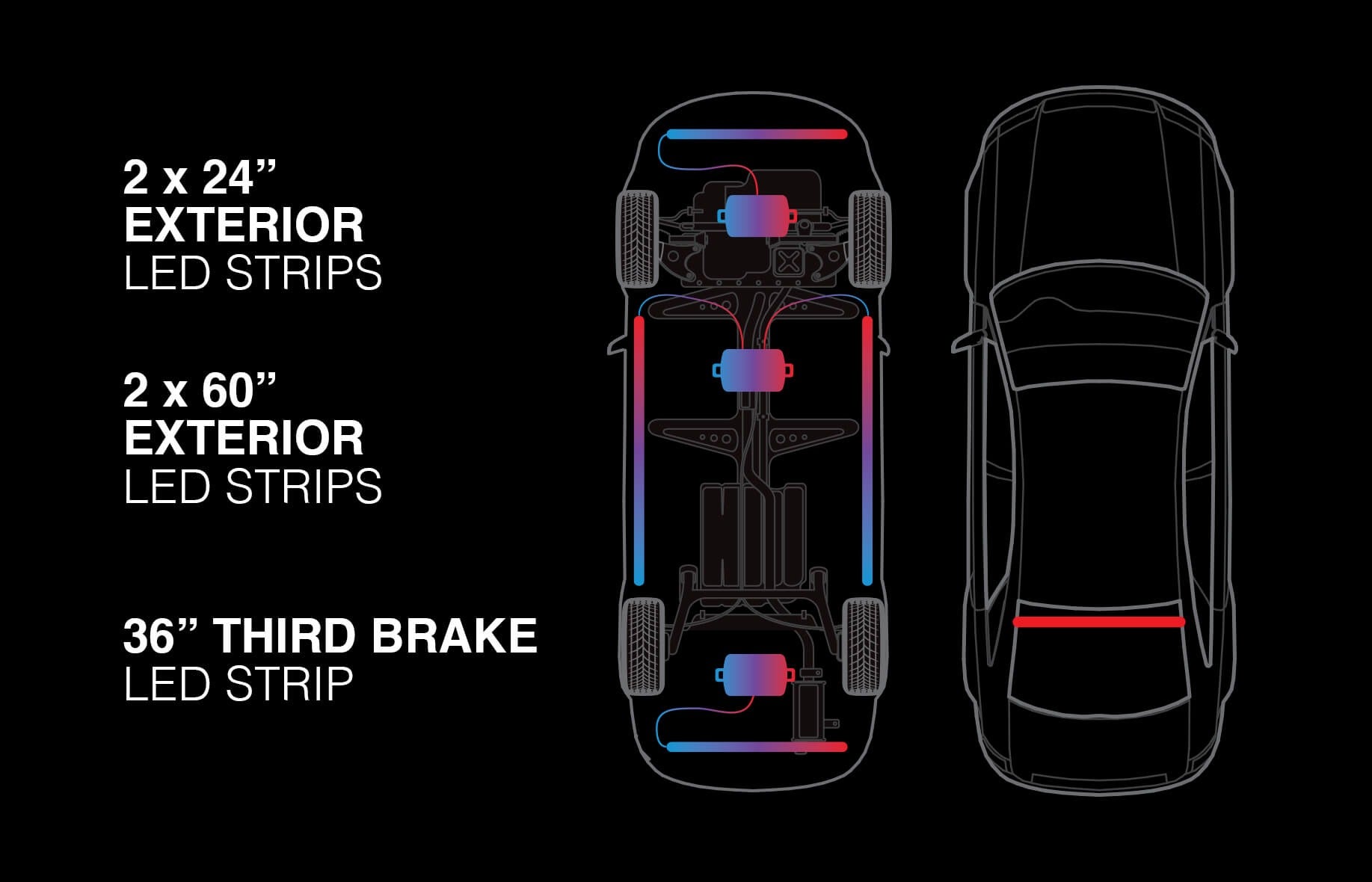 The Formula DRIFT Pro Series Smart LED Exterior Lighting Kit features SMD 5050 RGB and SMD 2835 red LED chips for an energy efficient, high lumen output that will make your ride really glow.