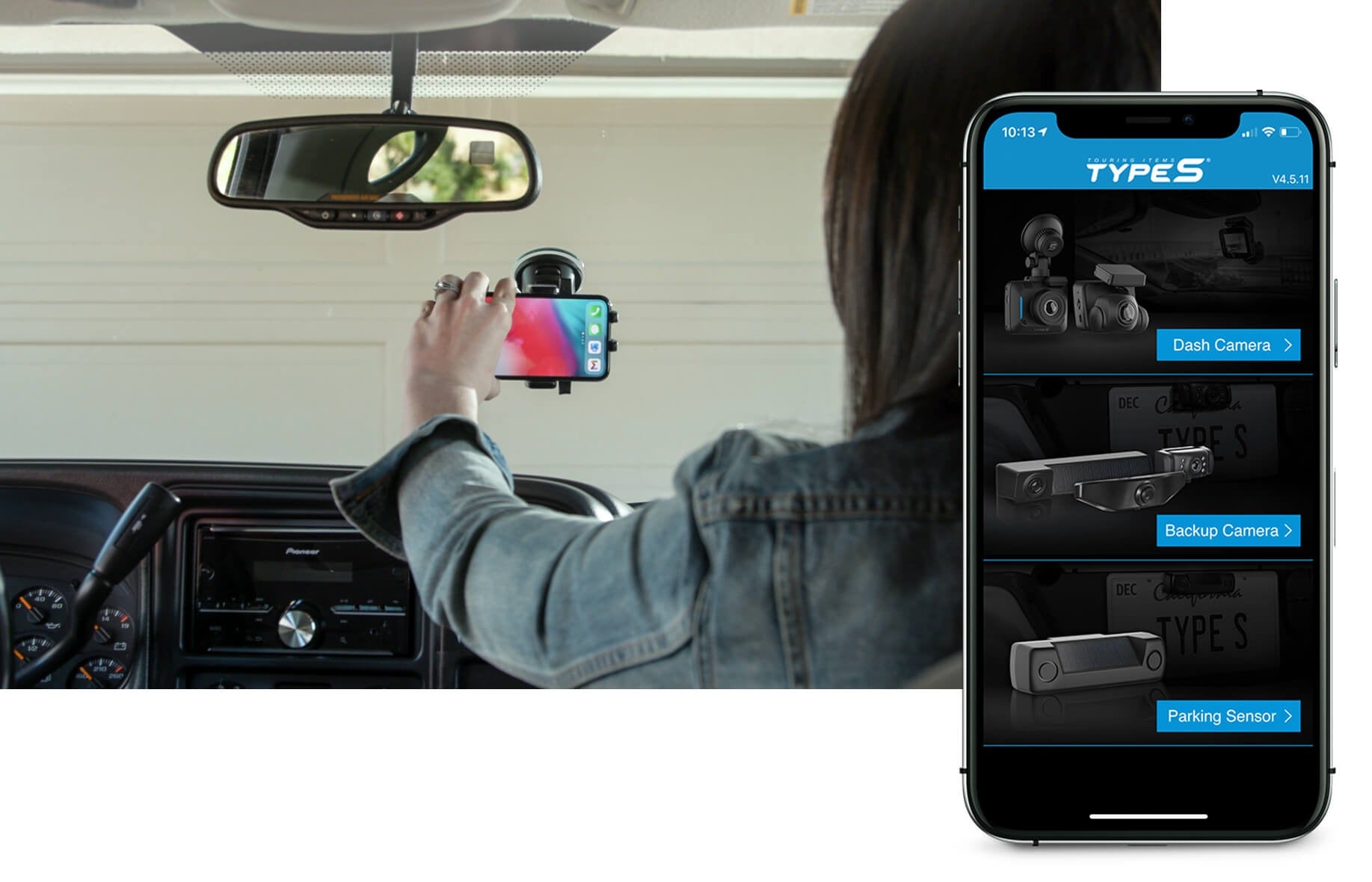 Replace the bulky dashboard monitor and power cables with your smartphone and the TYPE S Drive app to conveniently access and control your backup camera.