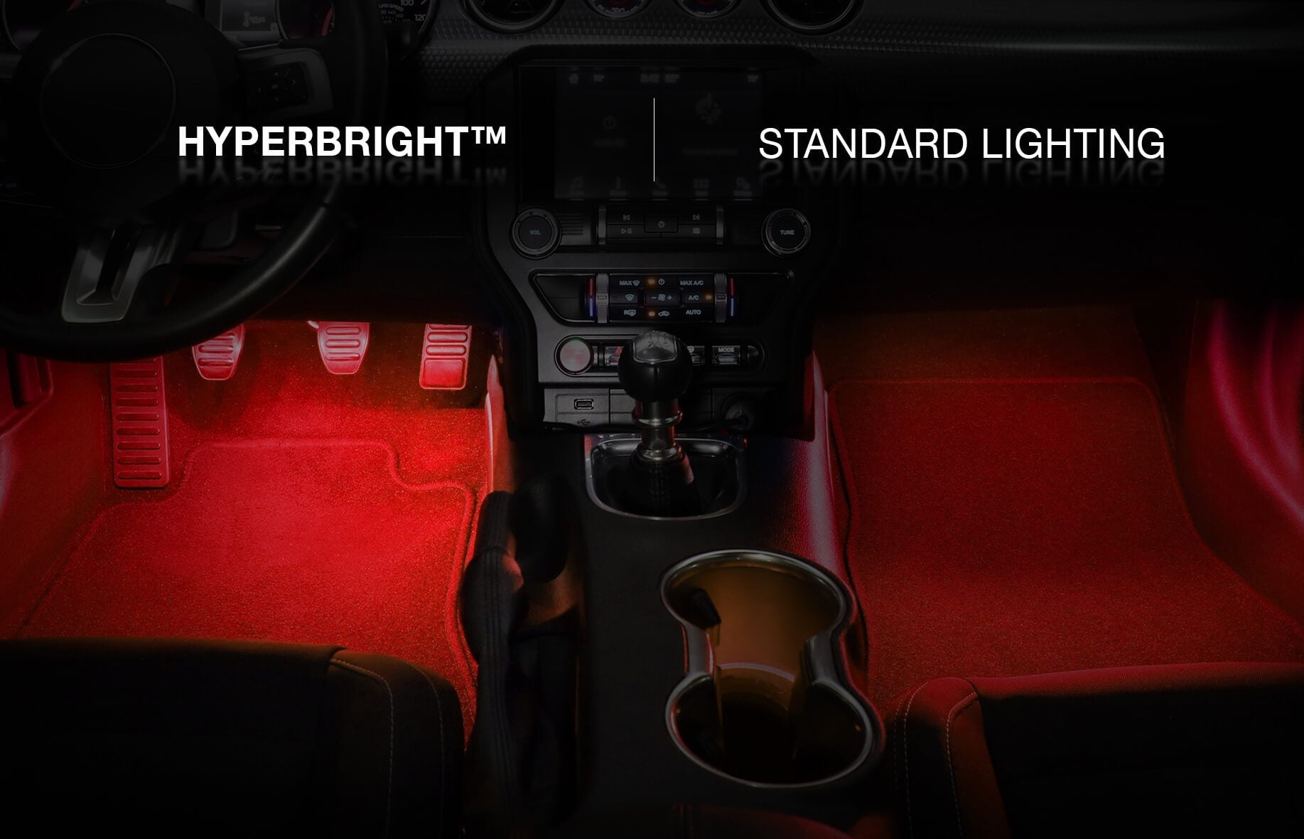The TYPE S 24" HyperBright™ LED Kit takes brightness to another level by outshining standard kits by 80%. Our vehicle lighting kits come with flexible, water-resistant, adhesive-backed LED strips. Designed with first-to-market, 4-pin Plug & Glow connection points, this TYPE S LED kit can extend up to 12 feet when using HyperBright™ extension strips (sold separately). Power the LED strips with the included the 12V power adapter, or 12V hardwire cable to the fuse box; fuse adapter not included.