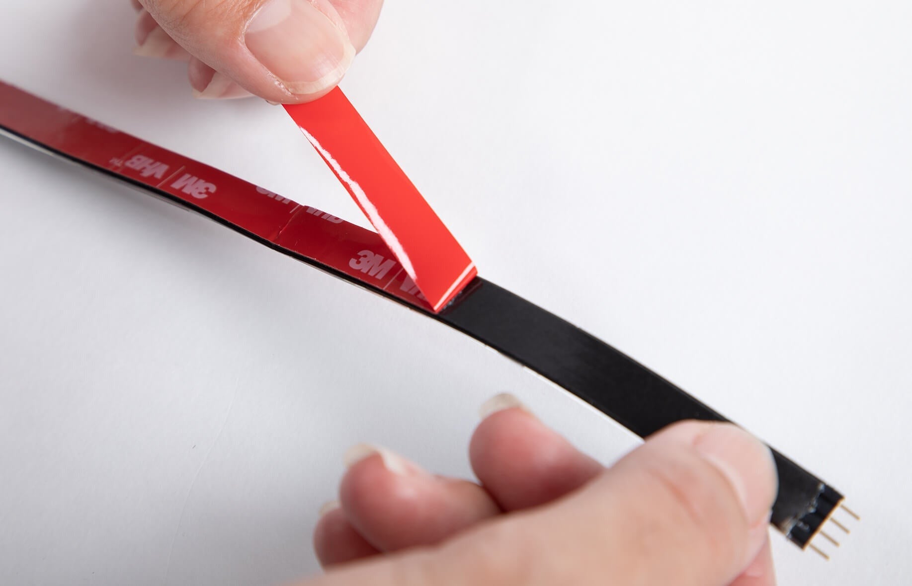 The LED strips are backed with 3M VHB (very high bond) adhesive strips.