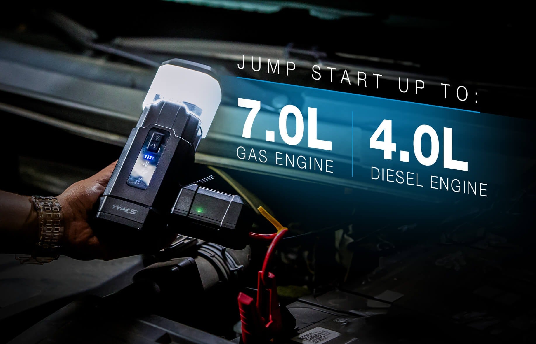 Jump start up to 7.0L gas or 4.0L diesel engines.