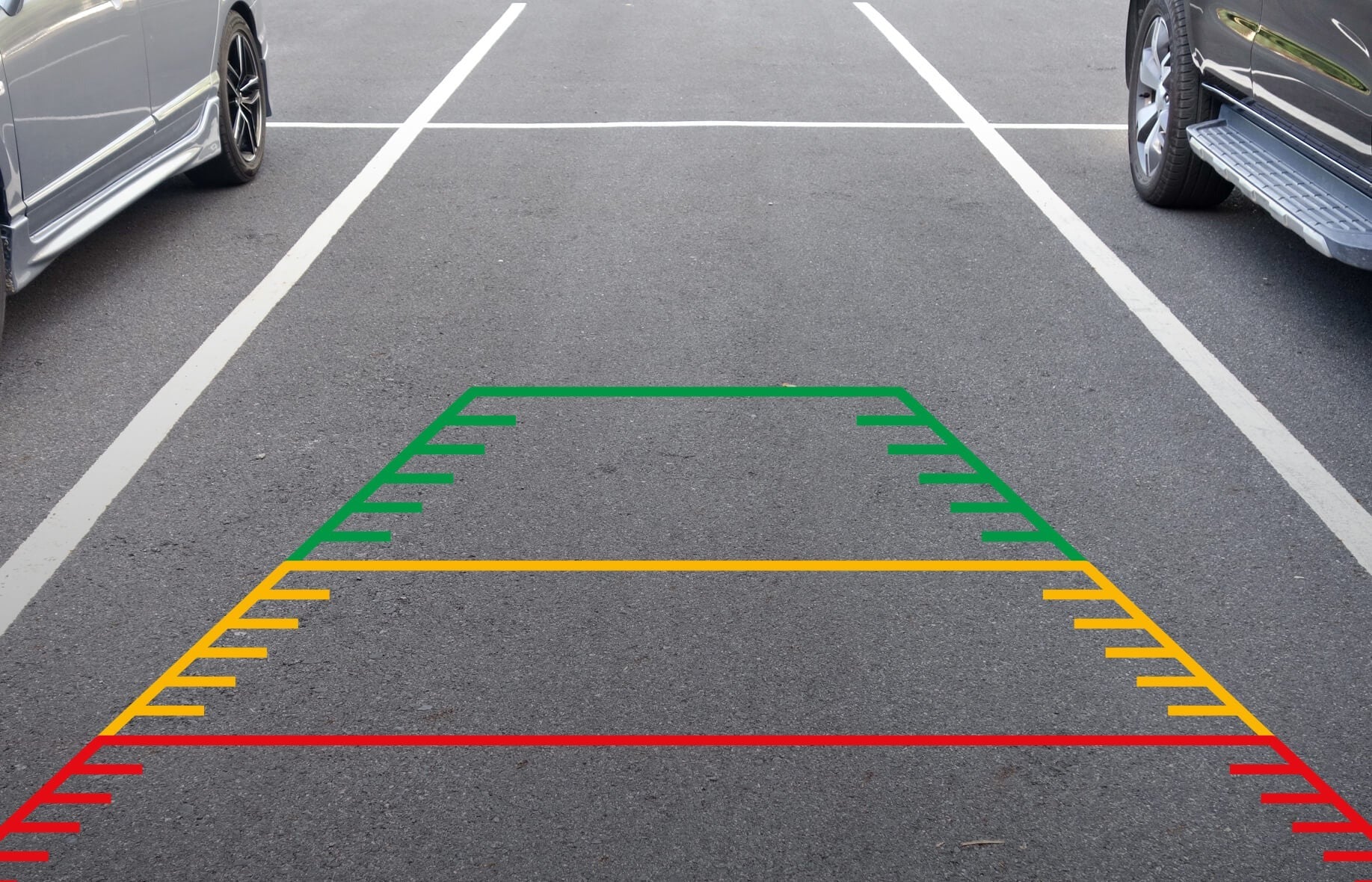 Parking Assistant can be turned On or Off in the monitor menu settings. When On, parking grid guidelines are present to help the driver judge distance. The grid lines can be adjusted manually up or down to account for the height of the vehicle.