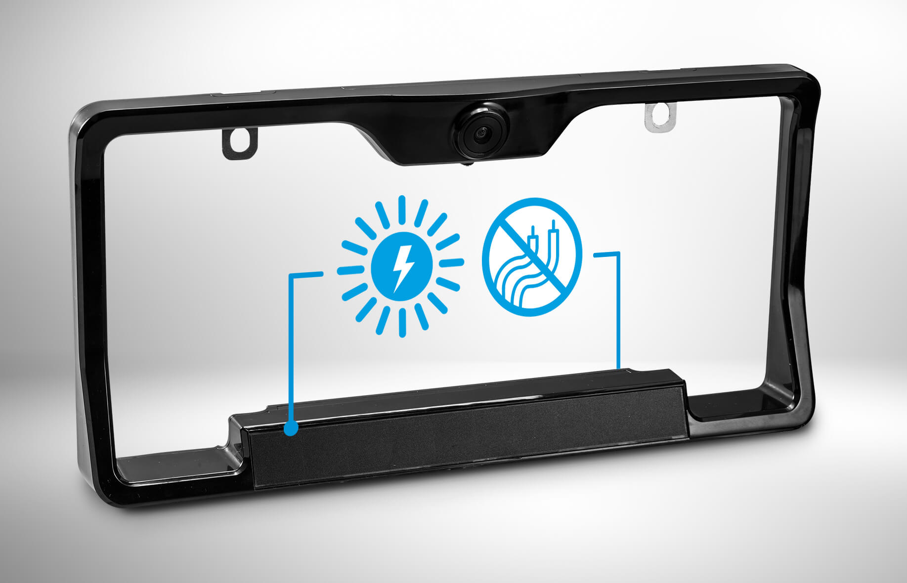 For example, the TYPE S Solar-Powered Wireless Backup Camera With Adjustable Lens is part of a modern and attractive license plate frame. Like any other license plate frame, this camera screws into place. An added bonus feature is the camera's adjustable lens, you can quickly adjust the camera to record exactly where you need.